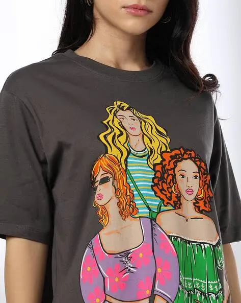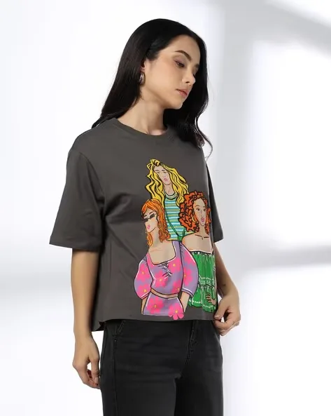 Women Graphic Print Boxy Fit Cotton Round-Neck T-Shirt