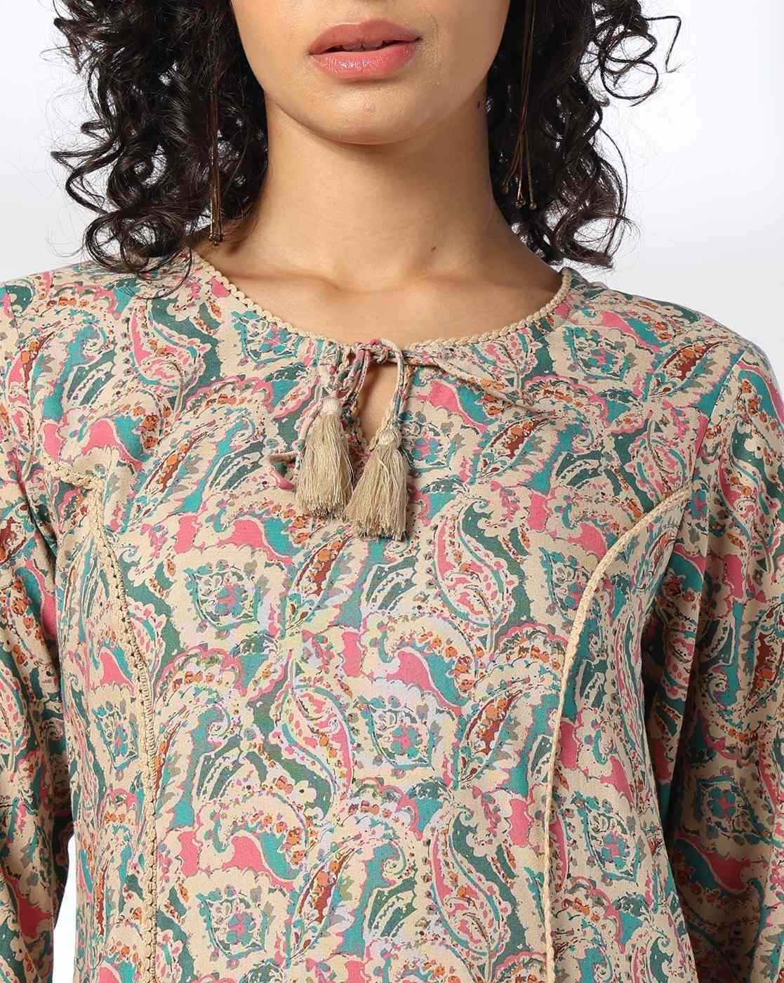 Women Paisley Print Straight Kurta with Neck Tie-Up